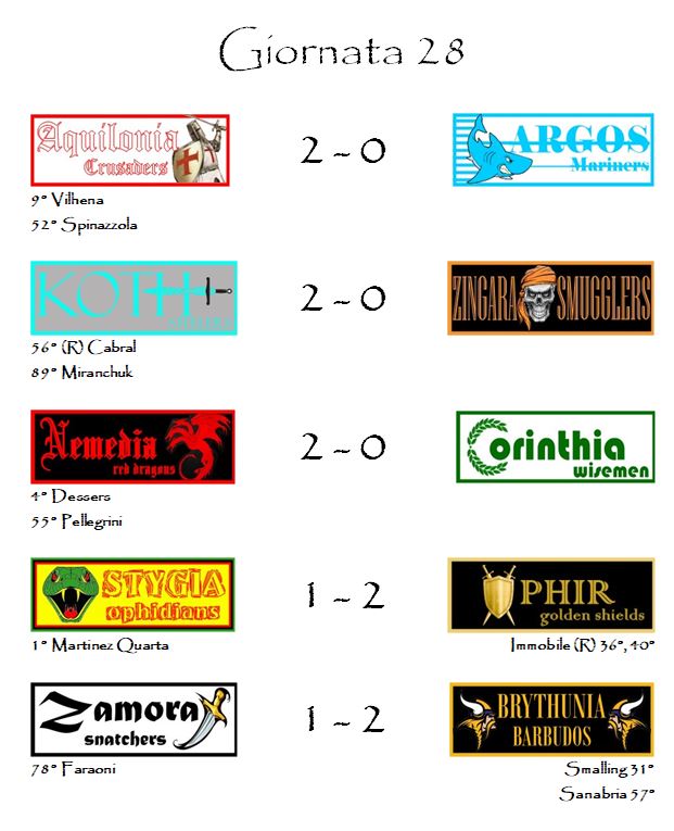 Koth ha sconfitto Zingara per 2-0 in quello che era lo scontro diretto di questa ventottesima giornata.