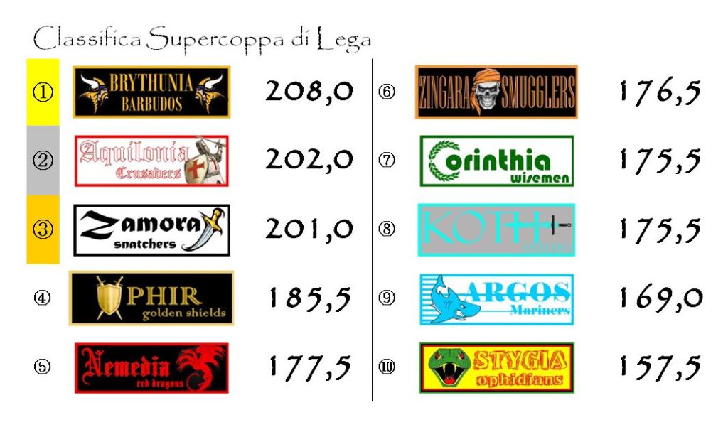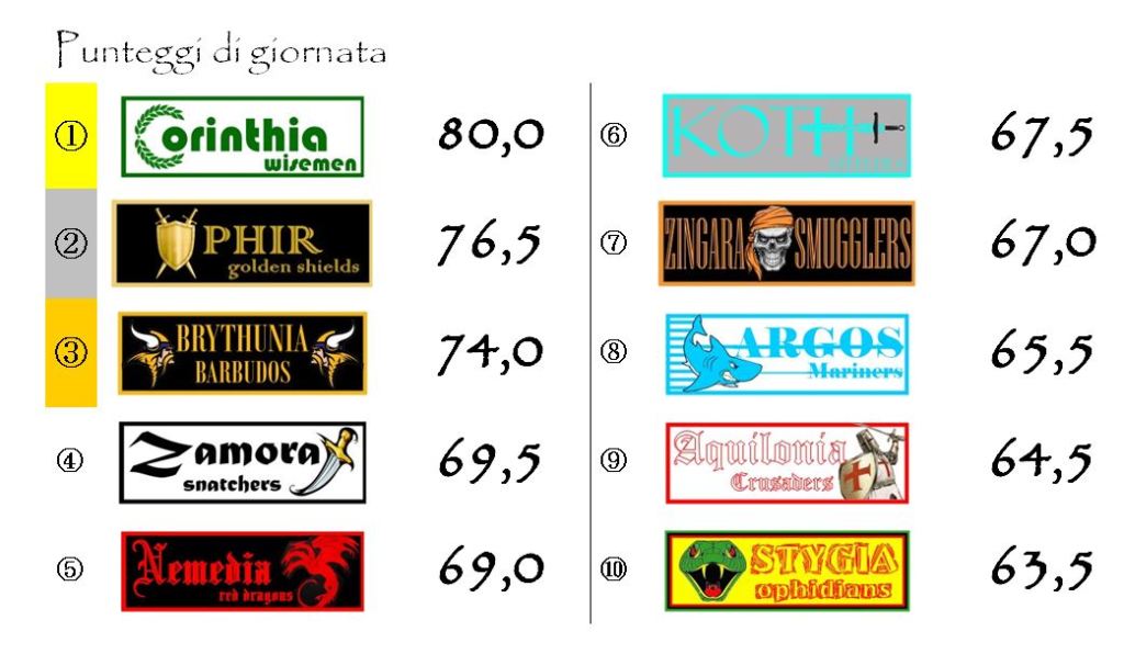 E’ molto più probabile che, nelle prossime giornate, si possa assistere all’infiammarsi delle corse all’Elmo d’Argento e/o a quello di Bronzo. I distacchi tra le tre squadre coinvolte nella bagarre (Bryhunia, Ophir e Koth), infatti, sono ben delineati ma non irrecuperabili.