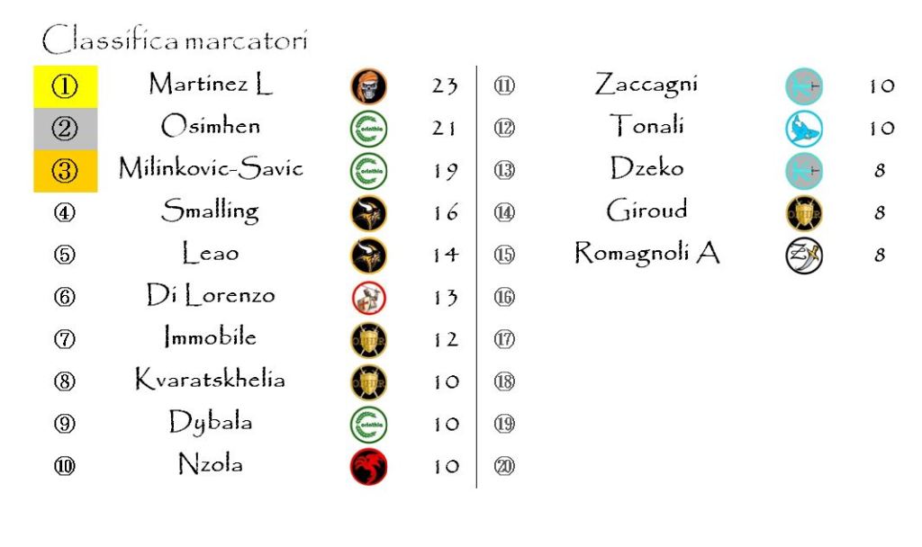 Al secondo e al terzo posto si sono classificati Viktor Osimhen e Sergej Milinkovic-Savic, entrambi protagonisti di un’ottima stagione.