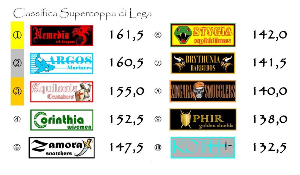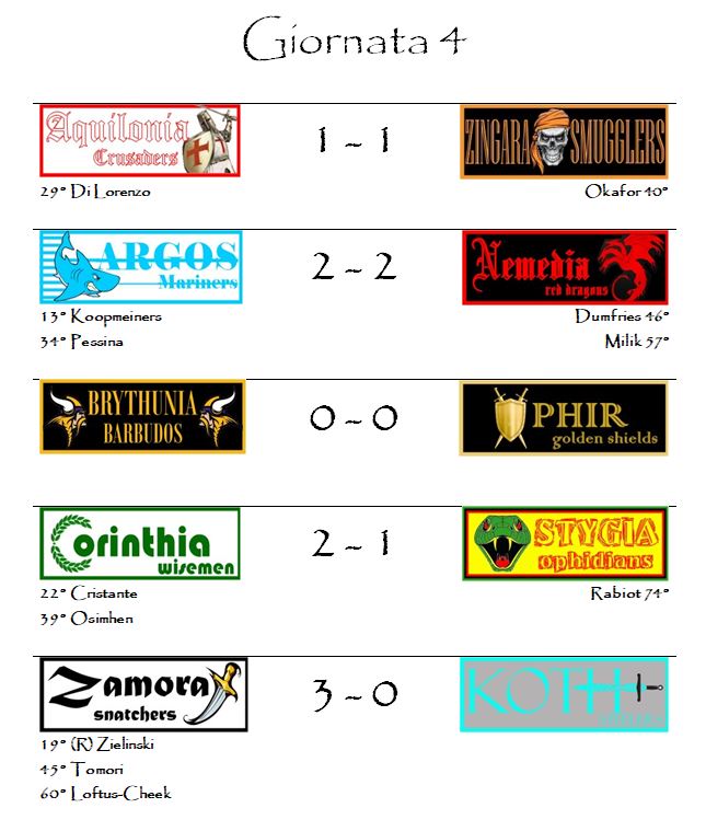 Il quadro degli incontri sarà completato da Stygia–Ophir e Koth–Aquilonia.