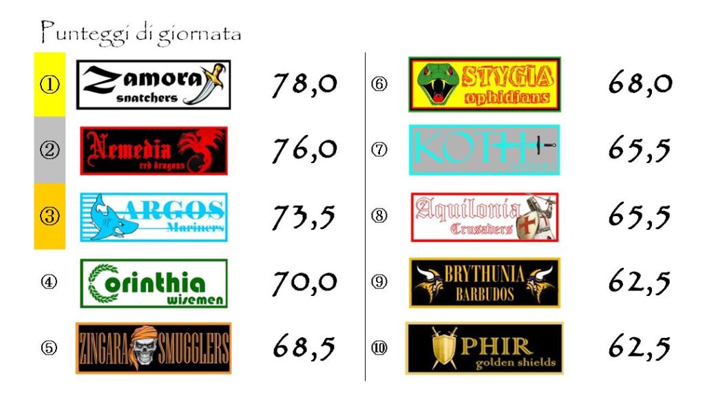 Il terzo e ultimo pareggio di giornata è stato quello del Conan Memorial di Tarantia tra Aquilonia e Zingara.
