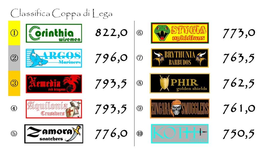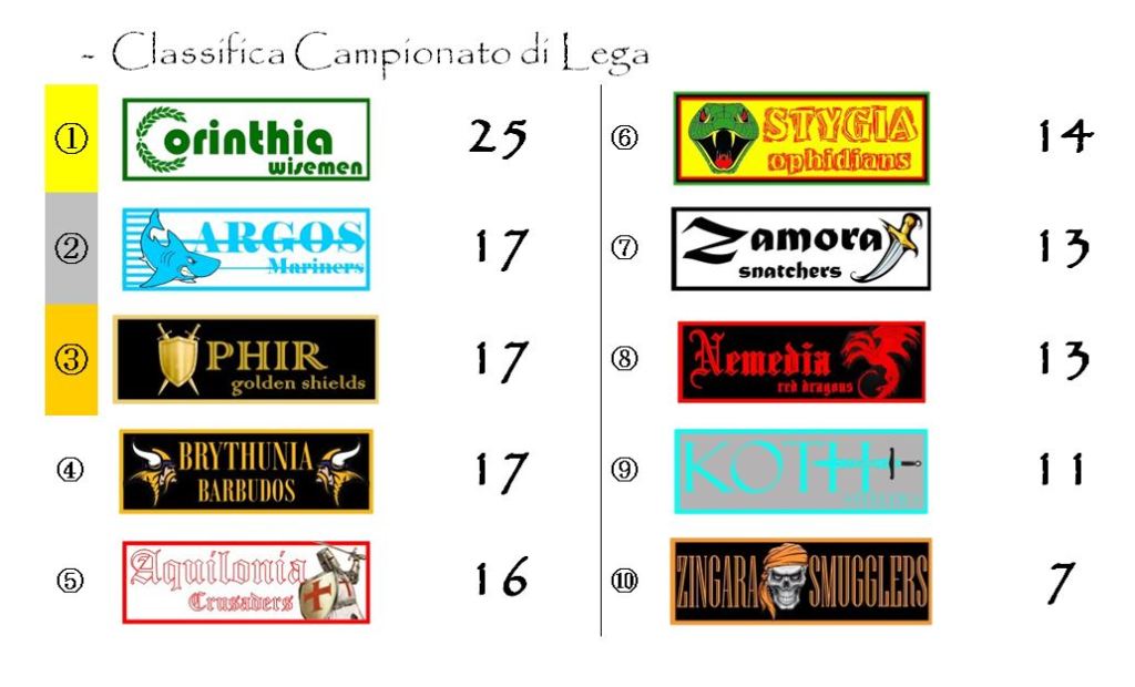 Gli avversari più virtuosi (Aquilonia, Ophir e Brythunia) sono arrivati comunque a grande distanza.