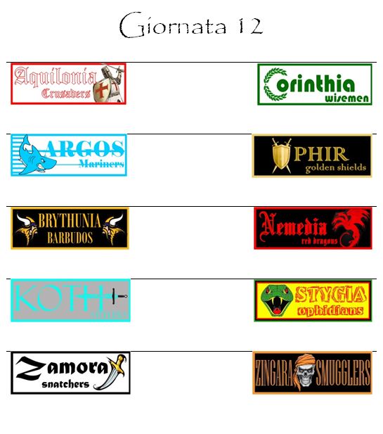 Il quadro degli incontri sarà completato da Koth–Stygia e Zamora–Zingara.