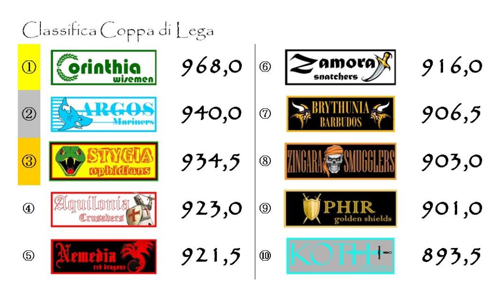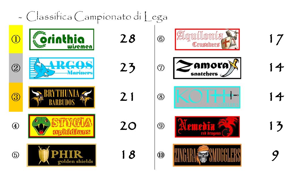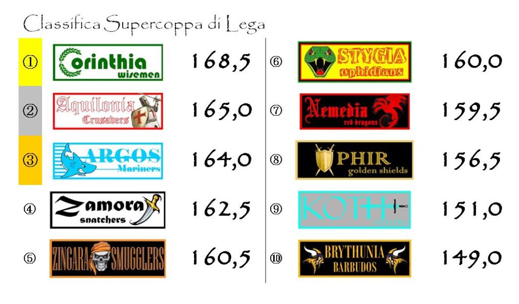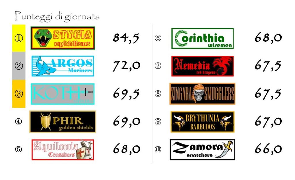 La vera novità è rappresentata dalla Stygia che, forte del suo considerevole punteggio, è riuscita a rimontare ben tre posizioni, insediandosi momentaneamente sul gradino più basso del podio.