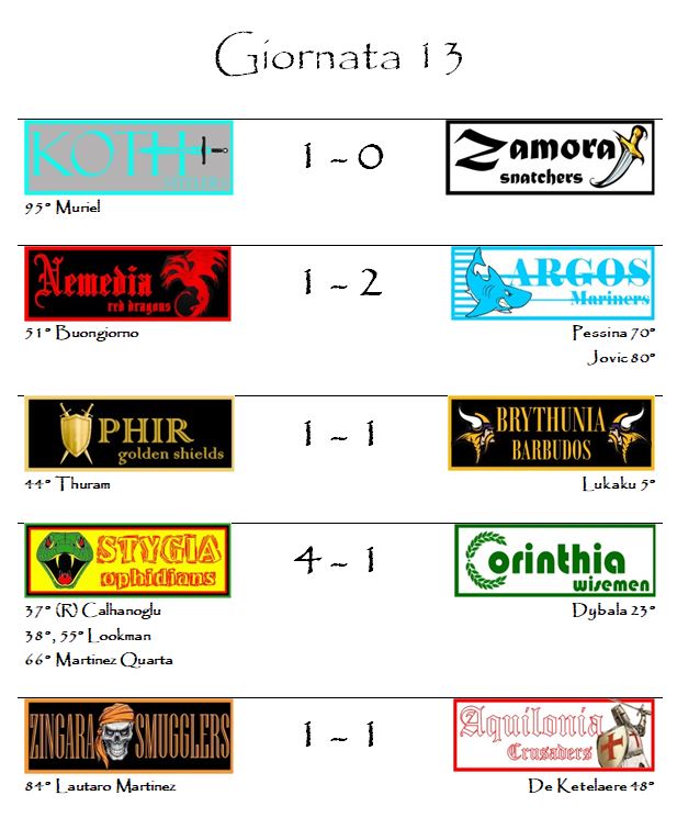 E con i risultati della tredicesima giornata è tutto.