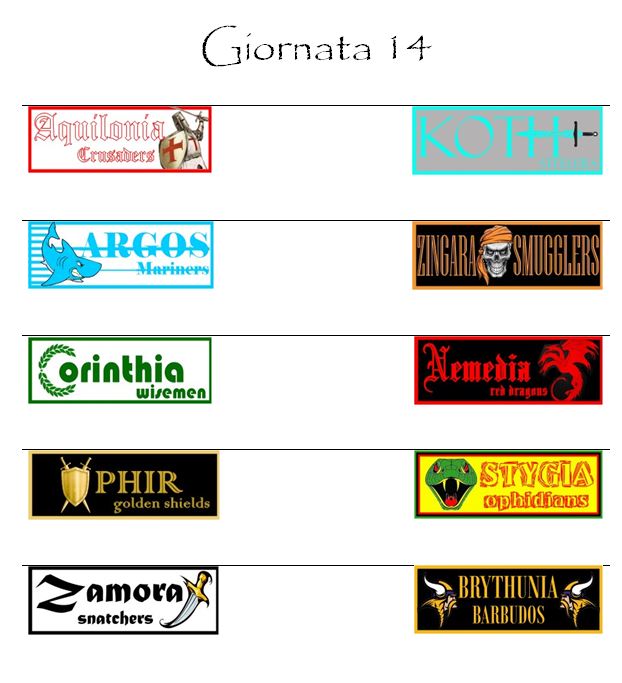Il quadro sarà completato dal match tra le rivali Aquilonia e Koth.