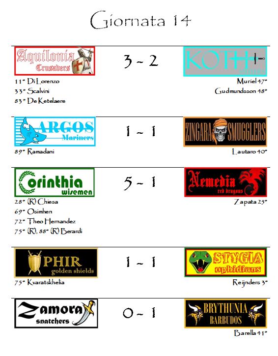 E con i risultati della quattordicesima giornata è tutto.
