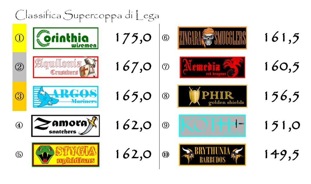La batosta rimediata una settimana fa sul campo della Stygia è già archiviata. Corinthia è tornata subito a marciare con le sue armate alla conquista di tutti i titoli che questa settima stagione dell’Hyboria League mette a disposizione.