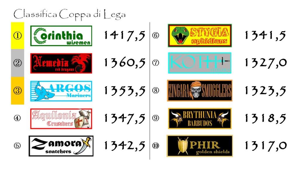 L’unico cambiamento significativo è rappresentato dal sorpasso di Aquilonia ai danni di Zamora.