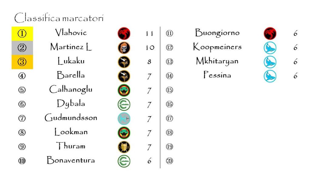 Il serbo ha approfittato dell’assenza forzata di Lautaro Martinez per scavalcarlo in vetta alla graduatoria grazie alle due reti segnate proprio contro gli Zingara Smugglers, squadra di cui l’argentino è capitano