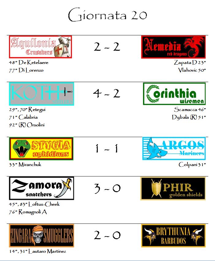 E con i risultati della ventesima giornata è tutto.