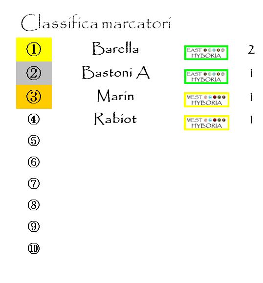 Al termine di Gara 2 la classifica dei marcatori non è mutata.