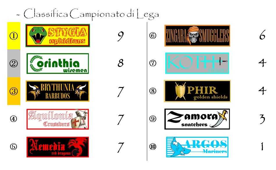 A pari punti con i Barbudos troviamo pure Aquilonia.