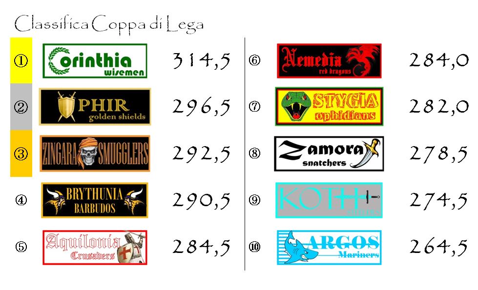 Corinthia, detentrice degli ultimi tre Elmi d’Oro di Hyboria, si è ripresa d’imperio la vetta e ha già messo quasi trenta punti di differenza tra essa e le più immediate inseguitrici.