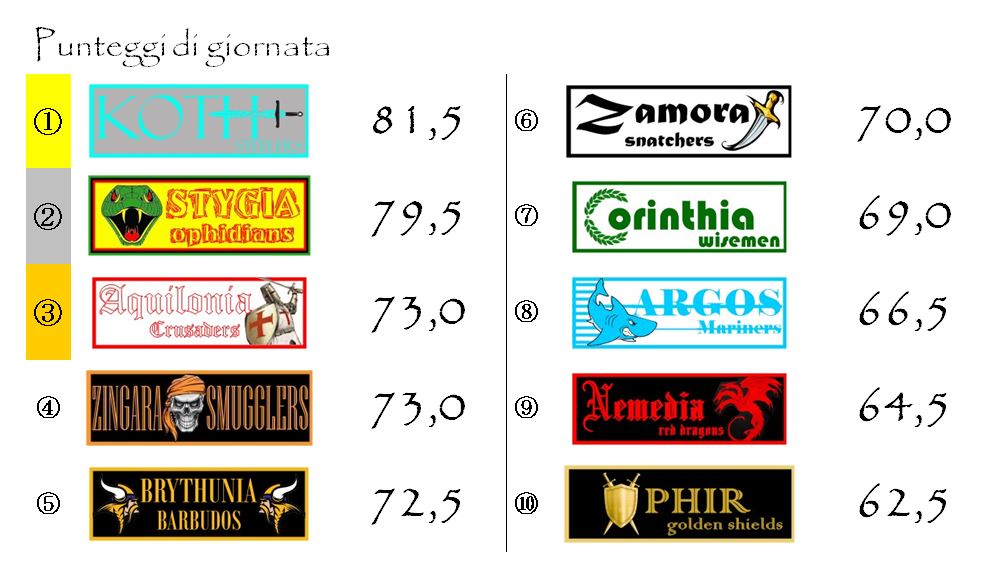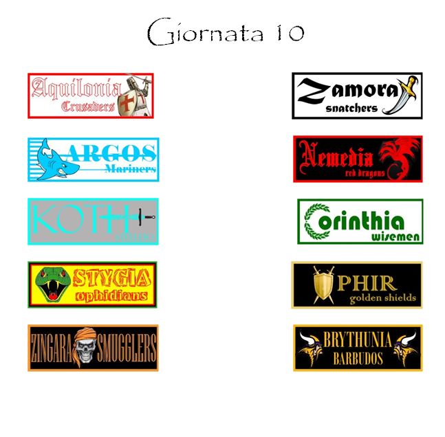 Il programma del decimo turno sarà completato da Argos–Nemedia ed Aquilonia–Zamora.
