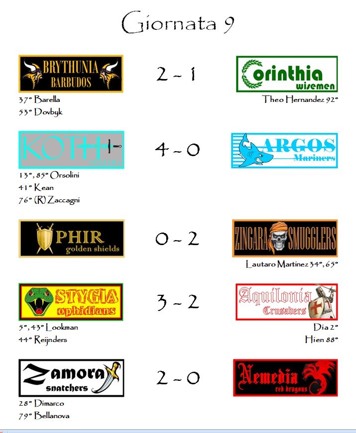 E con i risultati della nona giornata è tutto.