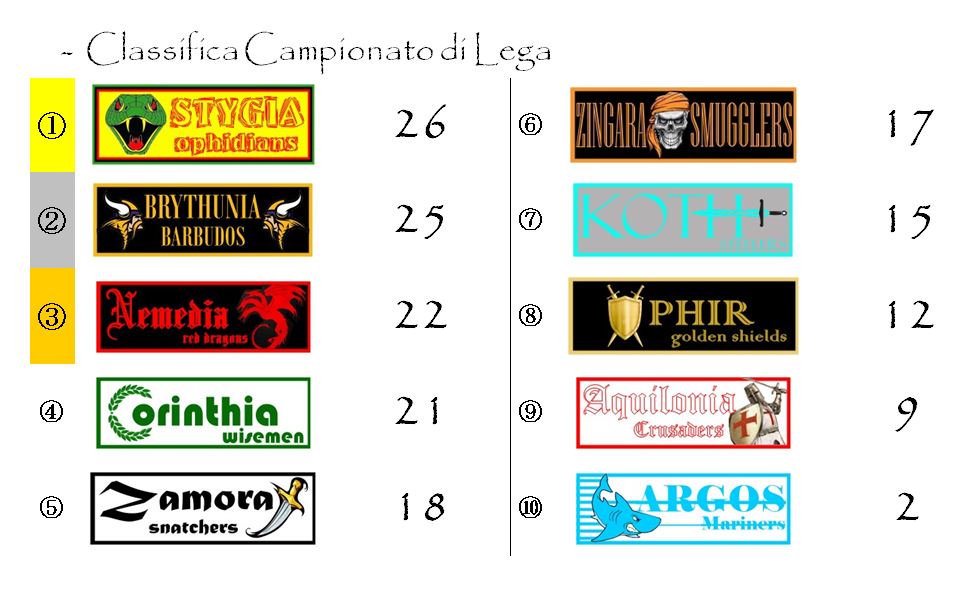 L’unica eccezione è rappresentata dalla Brythunia che ha compiuto un considerevole salto in avanti e che, adesso, tallona da vicino gli Zingara Smugglers.