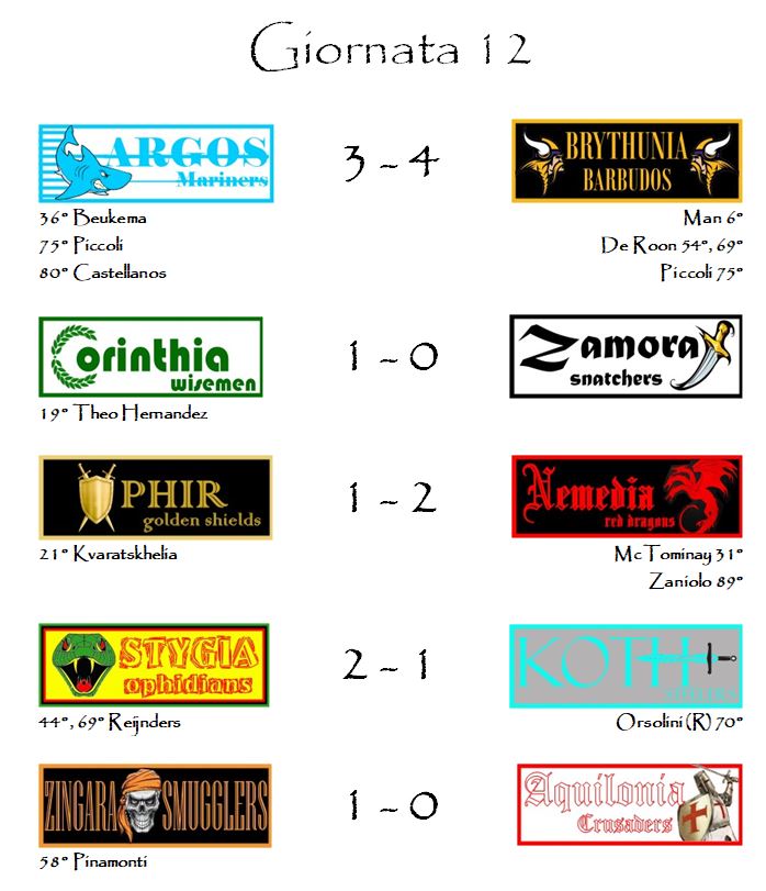 E con i risultati della dodicesima giornata è tutto.