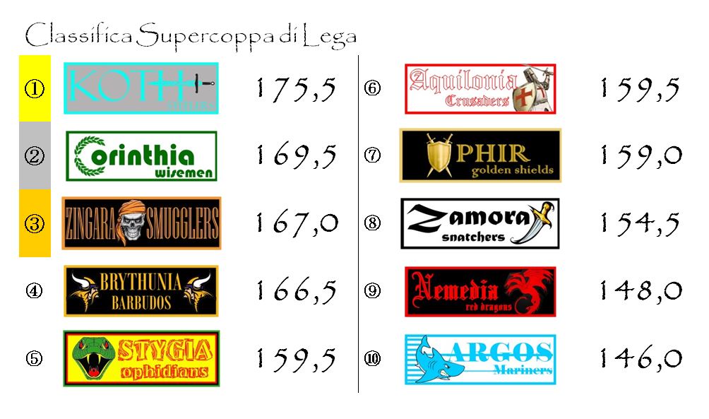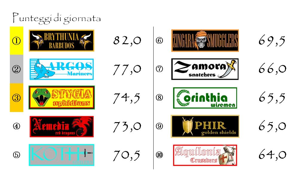 Abbastanza fortunata è stata anche la vittoria degli Zingara Smugglers sugli Aquilonia Crusaders.