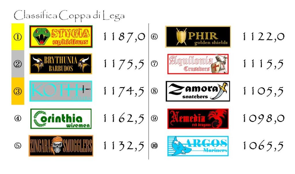 Stygia continua a guidare la classifica della Coppa di Lega, ma adesso alle sue spalle c’è la Brythunia.