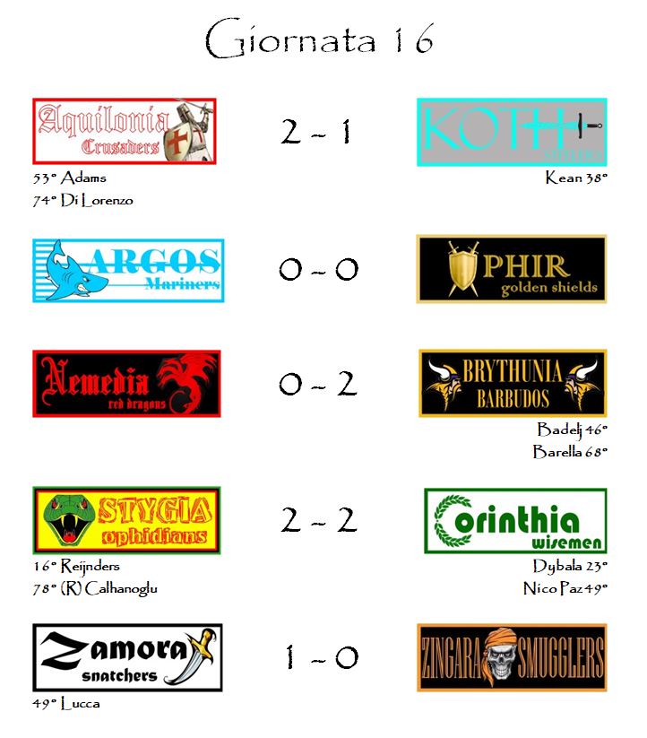 E con i risultati della sedicesima giornata è tutto.