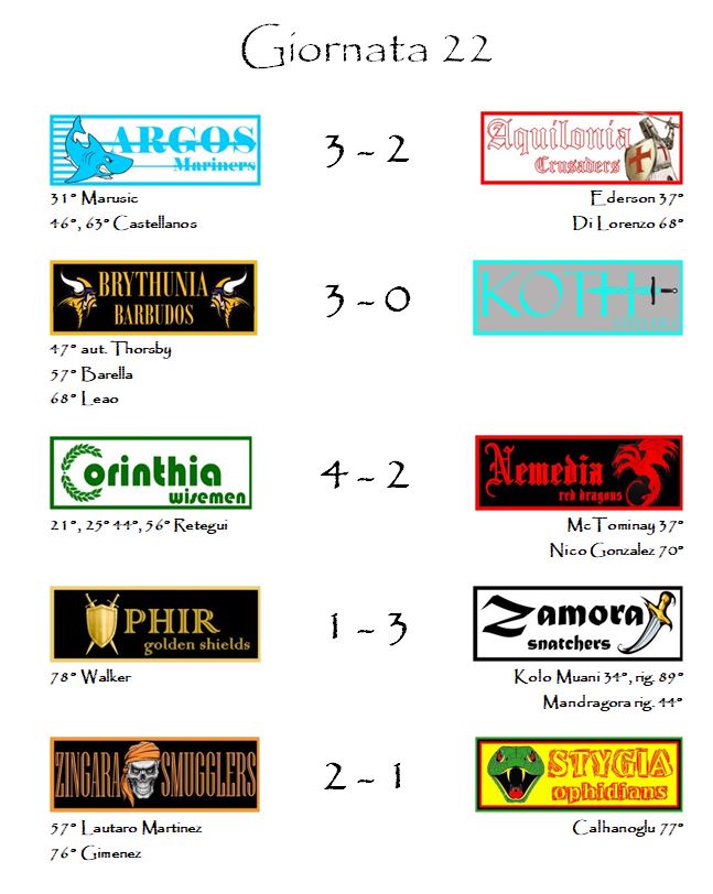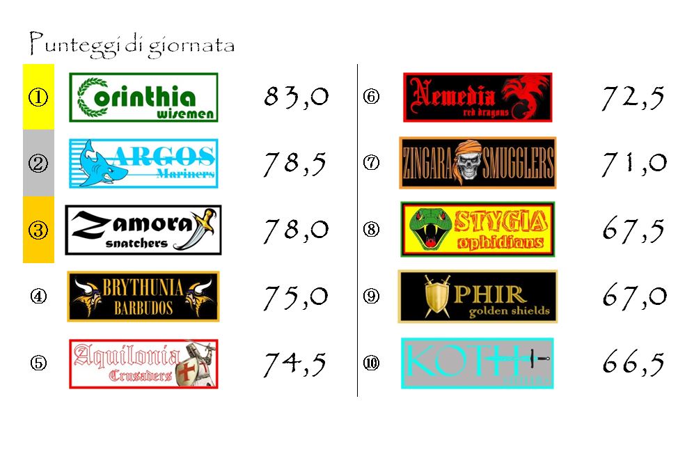 Quella dei bianco-verdi è stata, di gran lunga, la miglior performance di giornata. Performance che, come vedremo nei paragrafi successivi, rende ancor più serrata la corsa all’Elmo d’Oro di Hyboria.