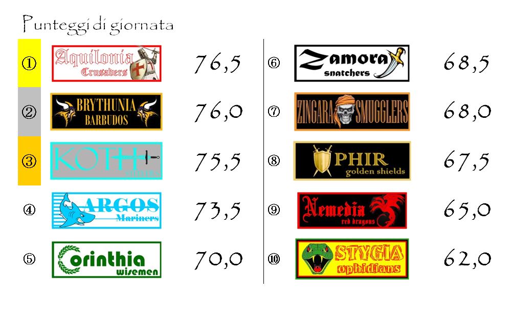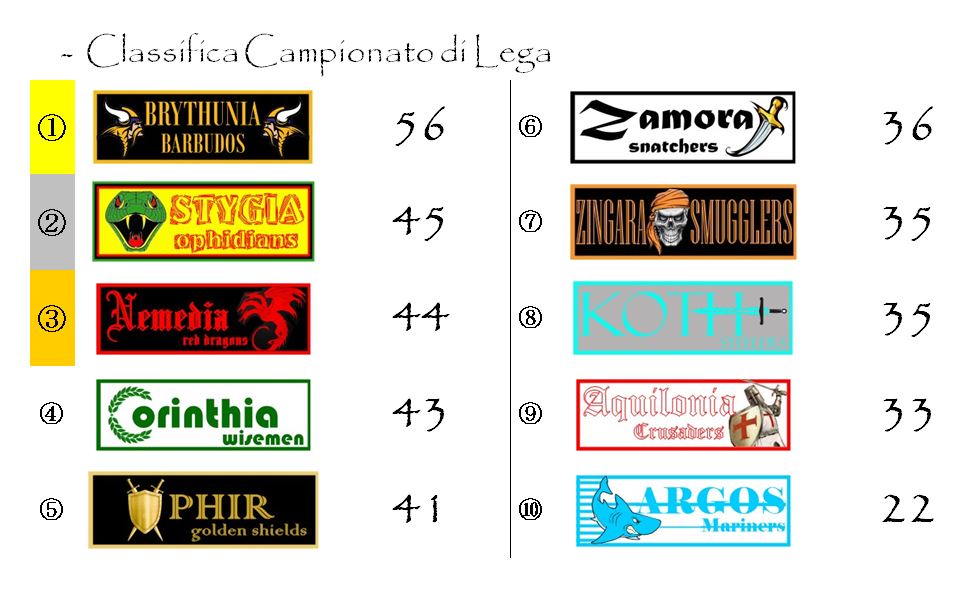 Tra la Brythunia e la Stygia ci sono ben undici punti di differenza. Difficile pensare che gli Ophidians, anche vincendo, possano avere la forza di riaprire la corsa al titolo.