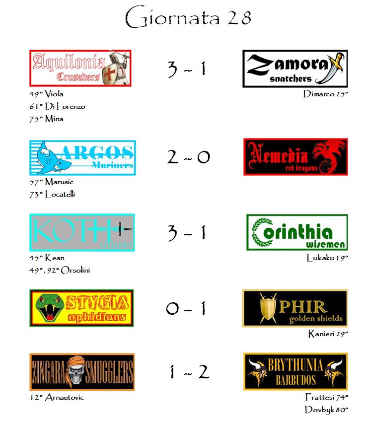 E con i risultati della ventottesima giornata è tutto.