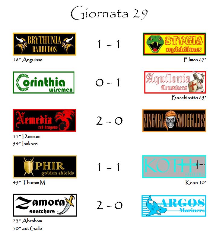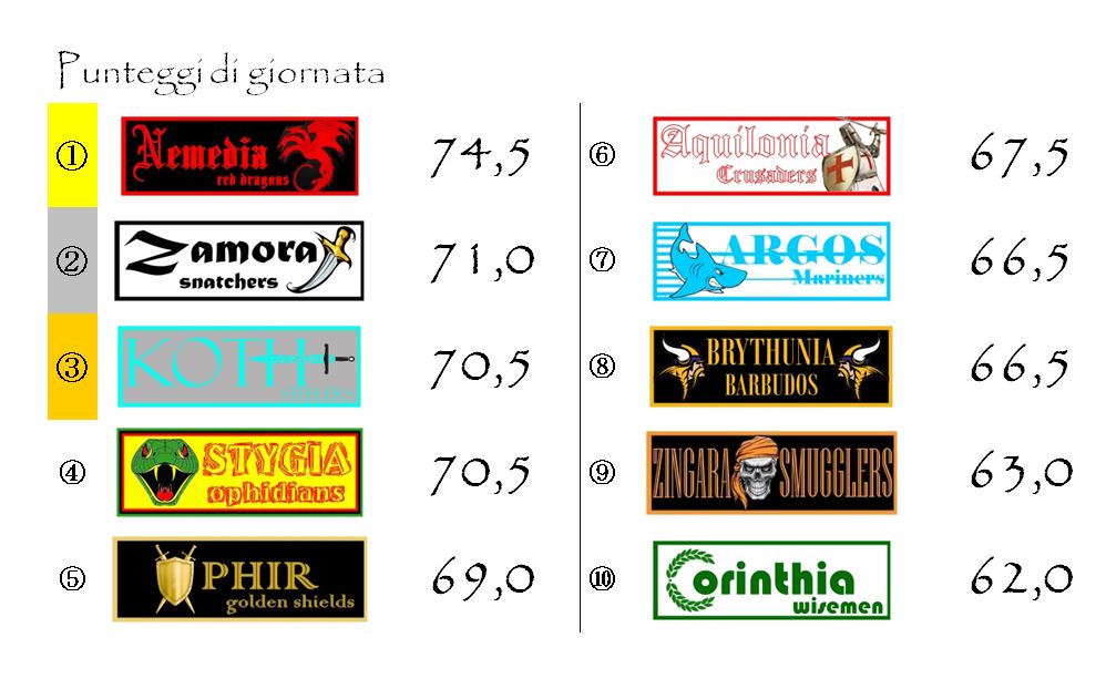 Il programma degli incontri sarà completato dalla sfida di Kordava tra gli Zingara Smugglers di mister Enzo Bruno e gli Aquilonia Crusaders.