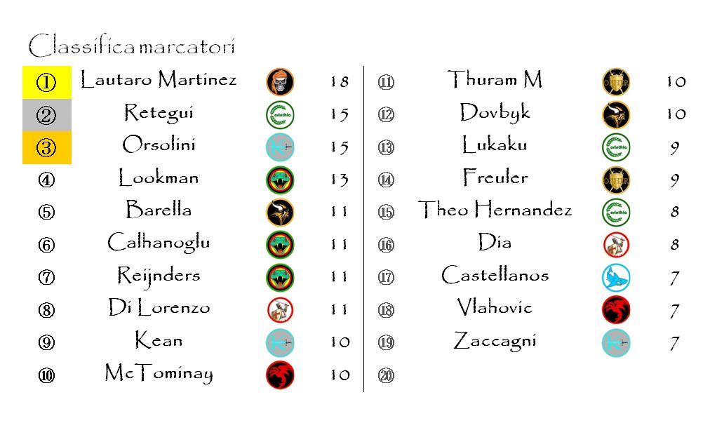 Entrambi gli attaccanti hanno potuto usufruire di una marcatura extra grazie alla quale hanno accorciato la distanza da Lautaro Martinez che, al netto dei problemi fisici delle ultime settimane, rimane leader della graduatoria.