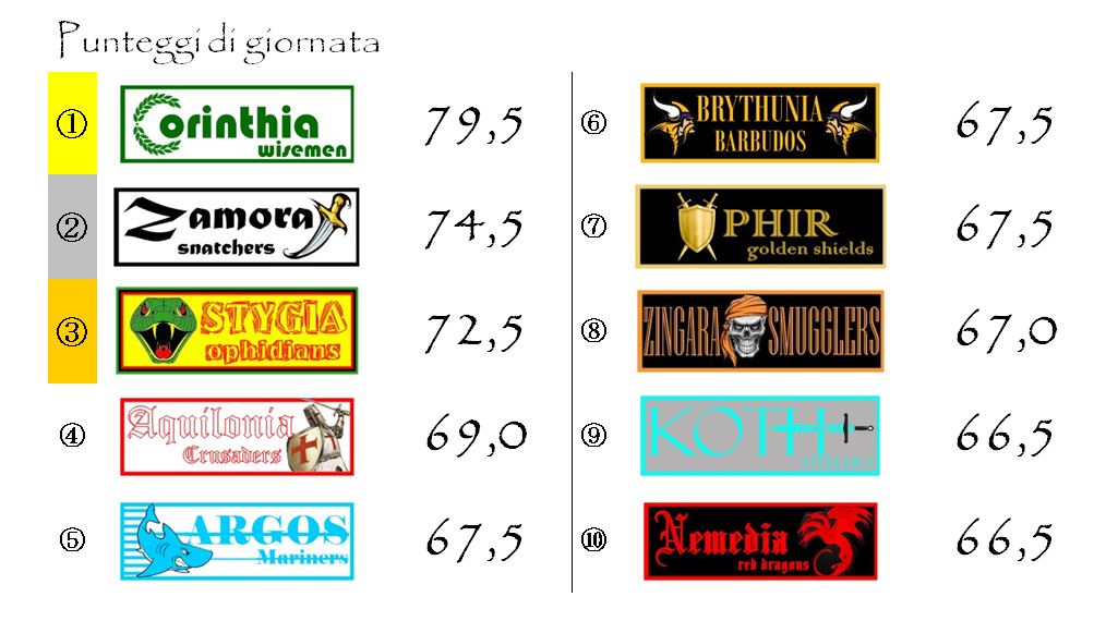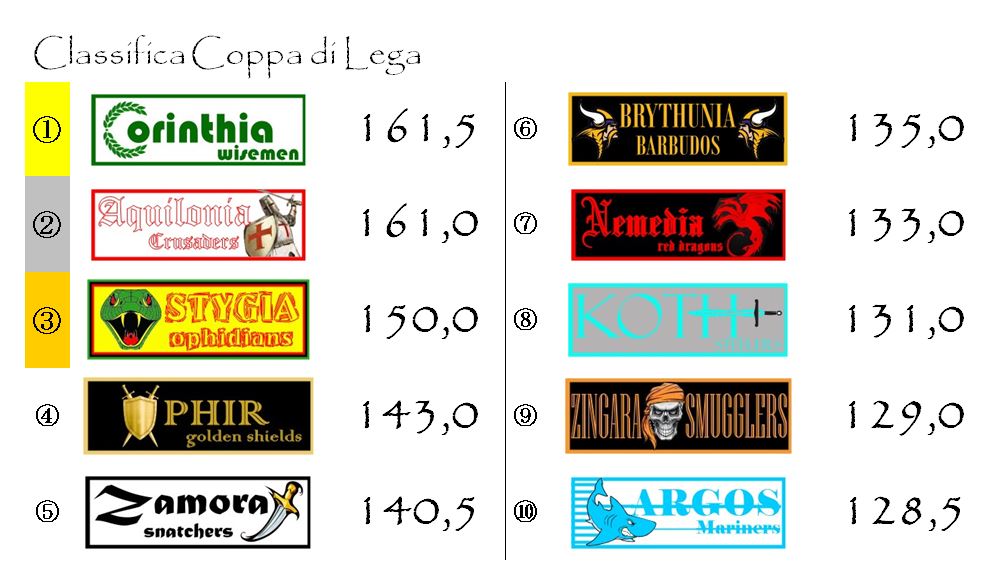 La graduatoria della Supercoppa vede, invece, ancora al comando Aquilonia.