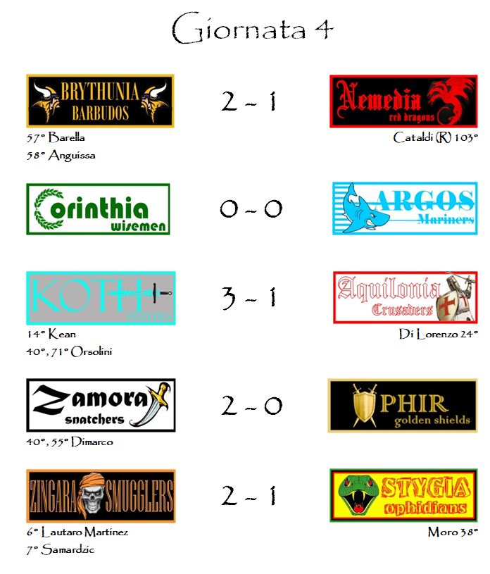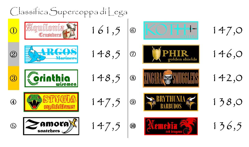 Una crisi che attanaglia sempre di più i Dragoni di Nemedia che, giunti alla terza sconfitta consecutiva, ora condividono l’ultima posizione a braccetto con gli odiati rivali di Aquilonia.