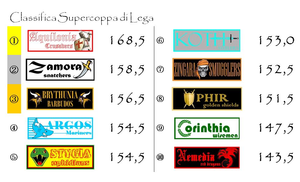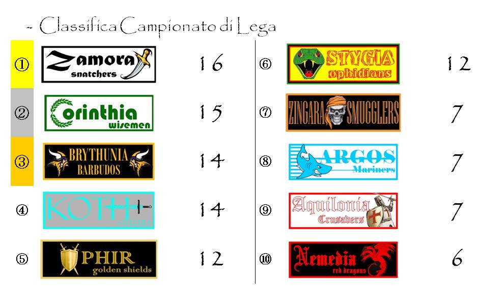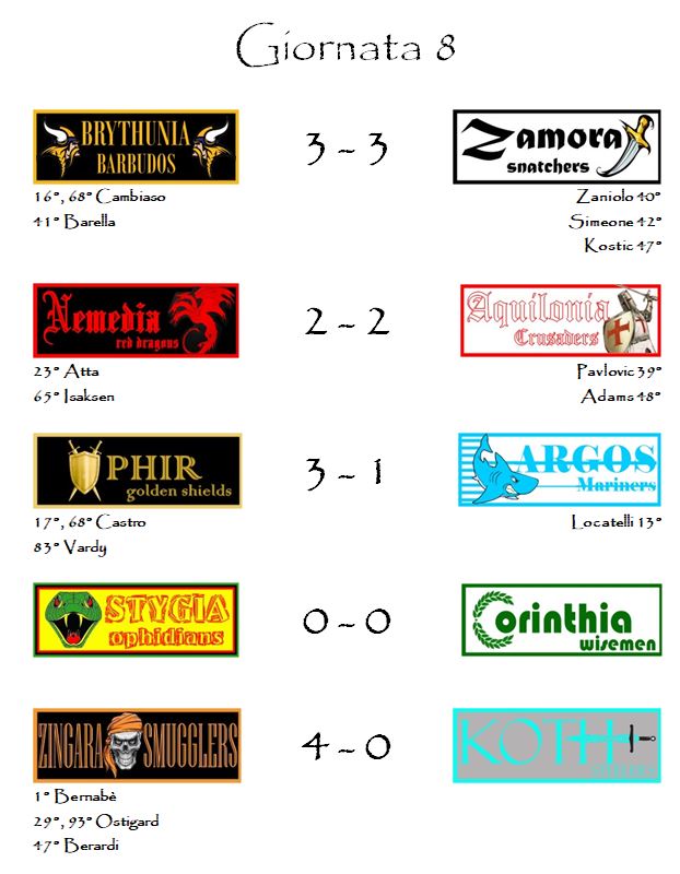 Le prime quattro squadre in classifica si affronteranno direttamente: all’Olympic Stadium di Akbitana si sfideranno Corinthia e Brythunia, le due dominatrici delle ultime tre stagioni; al Maul Camp di Shadizar si troveranno di fronte Zamora e Koth, le due rivelazioni di questo avvio di campionato.