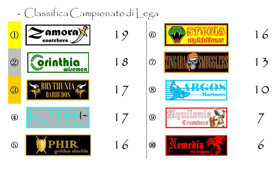 La classifica continua ad essere cortissima e consente questi repentini cambi di posizione. Stygia e Brythunia che, prima della sosta occupavano le prime due posizioni, ora sono sesta e settima.