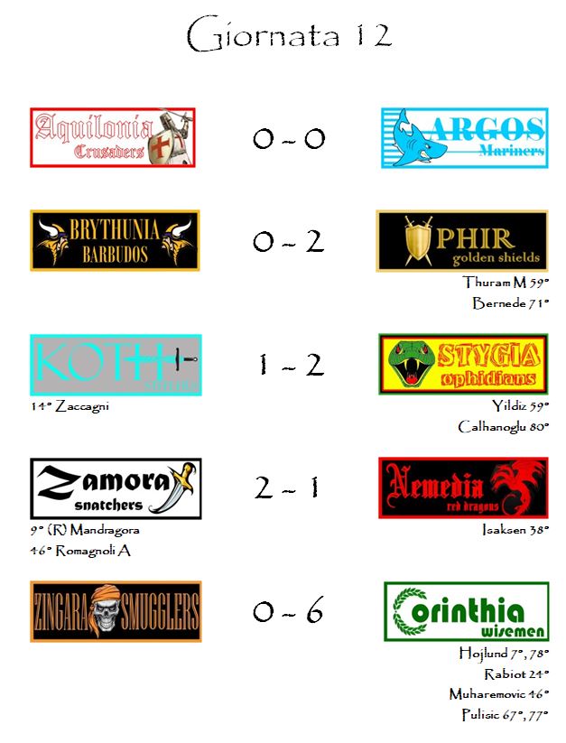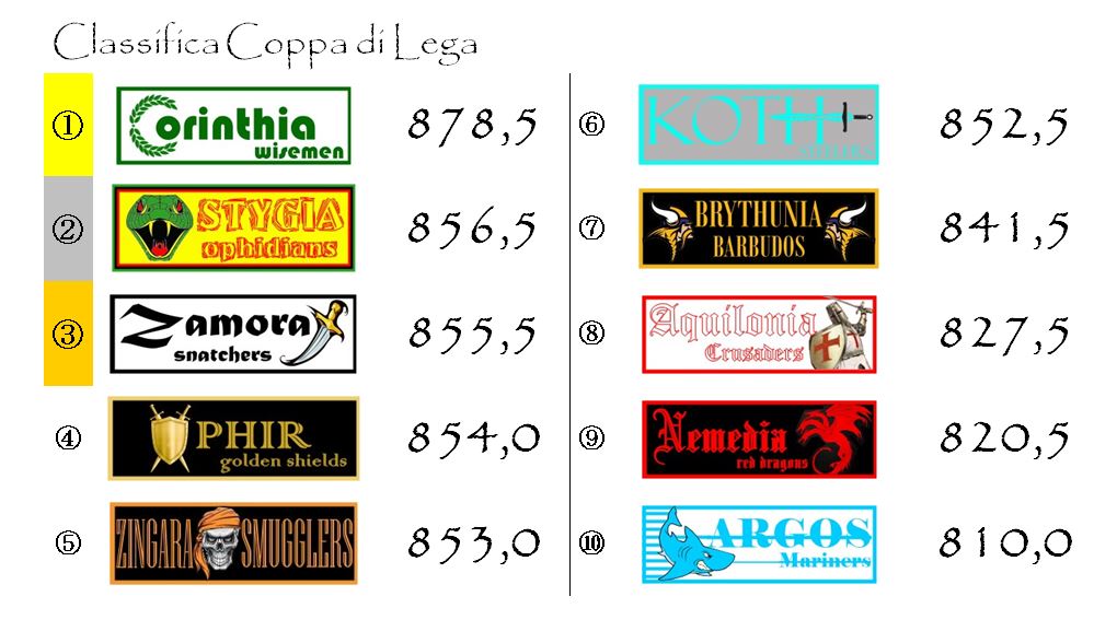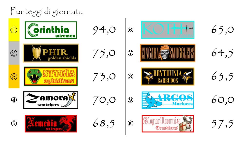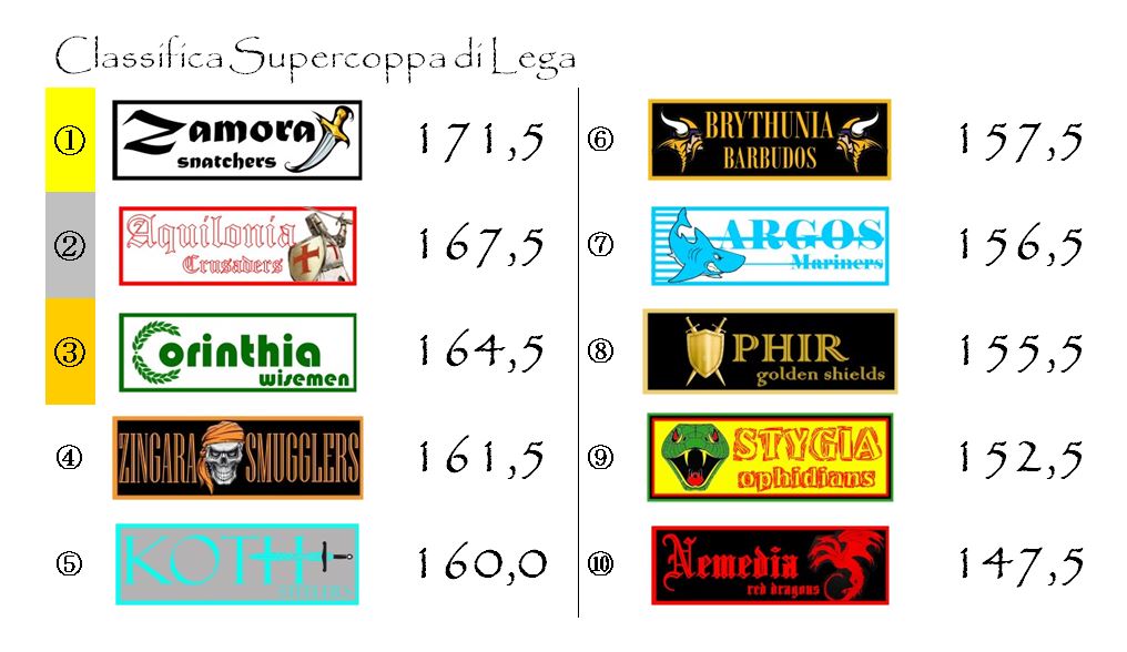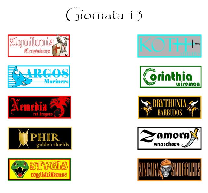Il quadro dagli incontri sarà completato da Nemedia–Brythunia e Aquilonia–Koth.