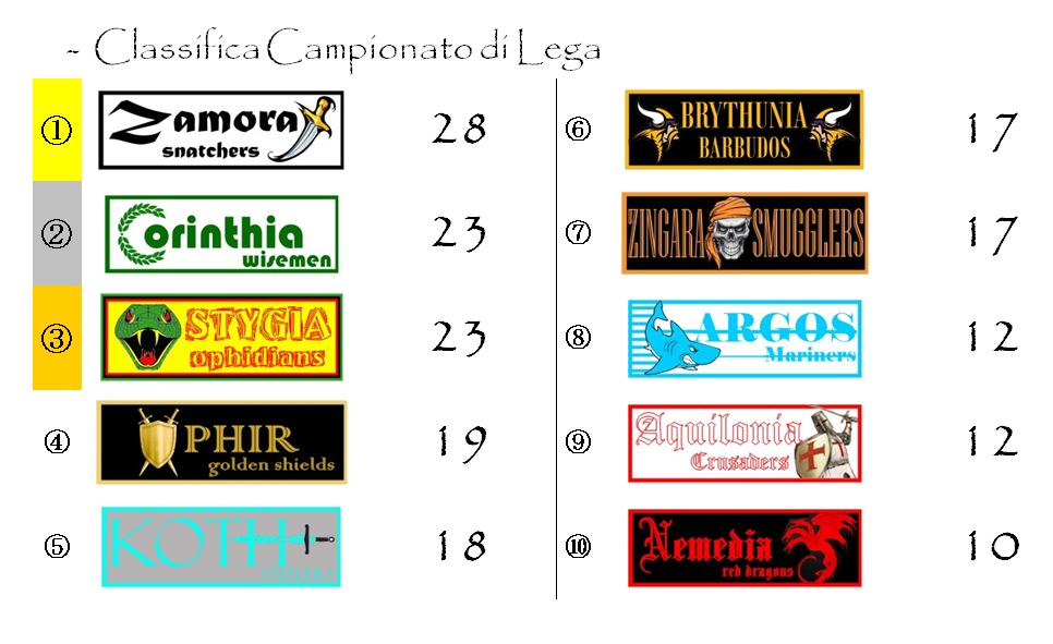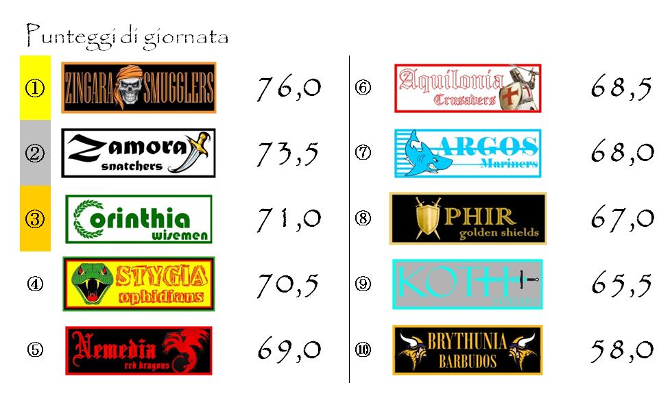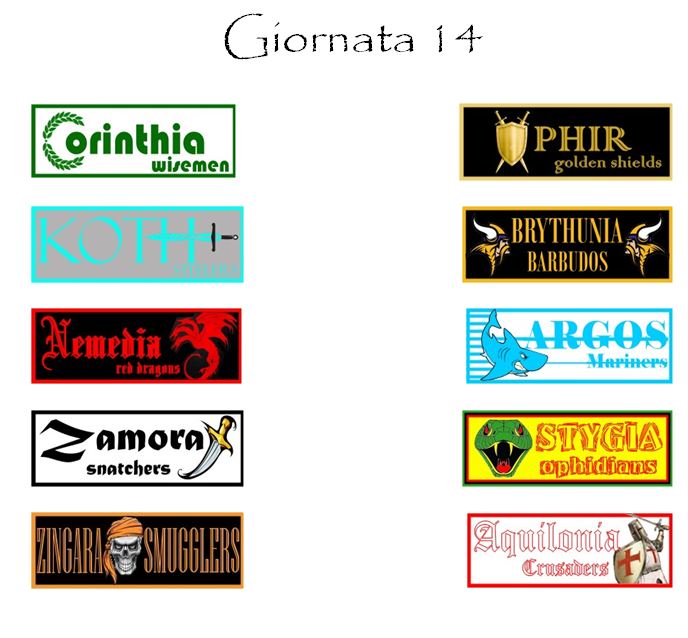 Aquilonia e Brythunia, per esempio, saranno prive dei loro quattro portieri. Le loro avversarie, Zingara e Koth, saranno orfane dei loro capitani (Lautaro ed Orsolini).
