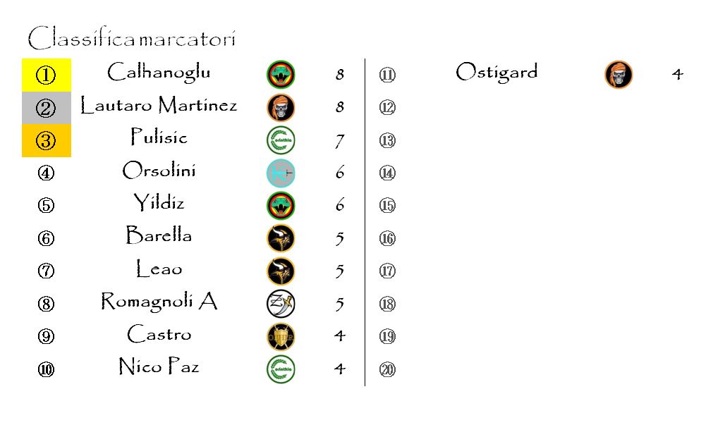 Lautaro Martinez ha appaiato in vetta Hakan Calhanoglu approfittando del suo infortunio e di una marcatura extra che gli abbiamo assegnato al termine di Stygia-Zingara.