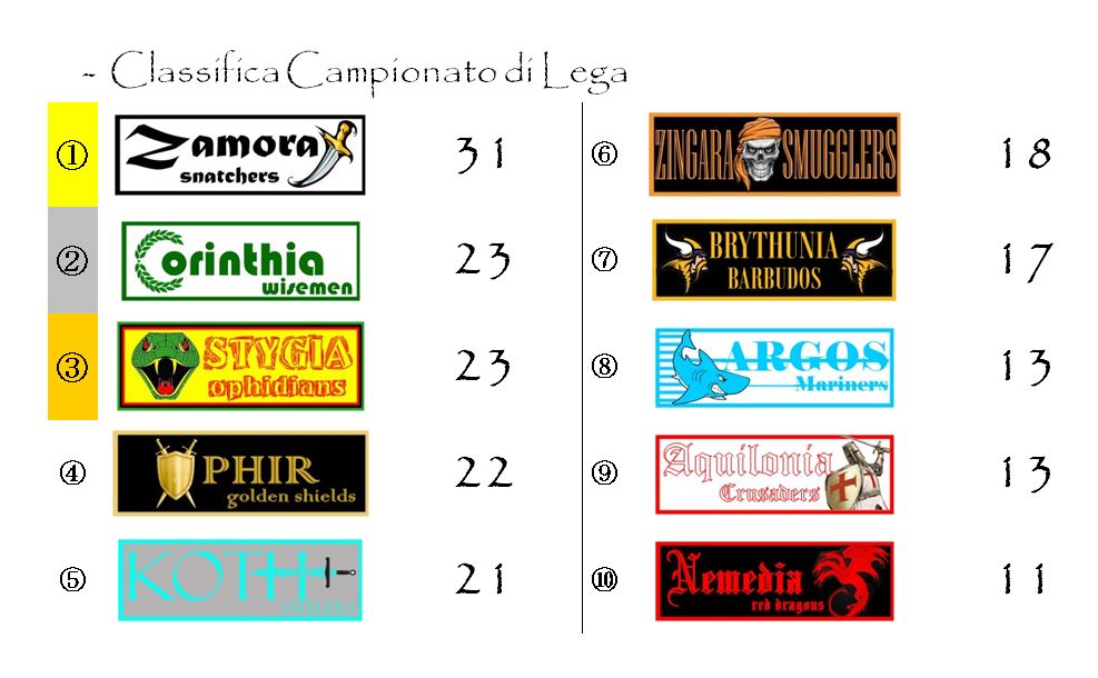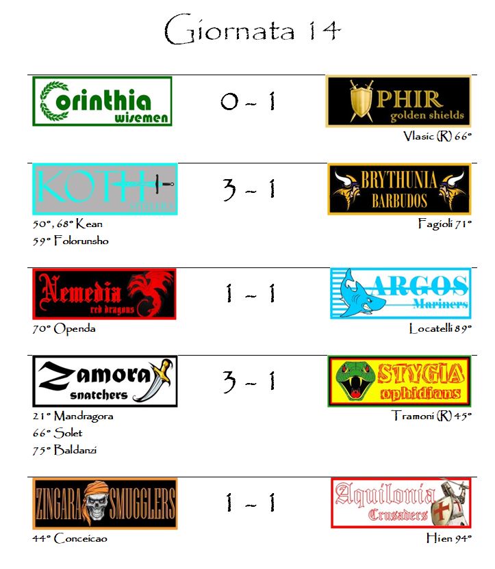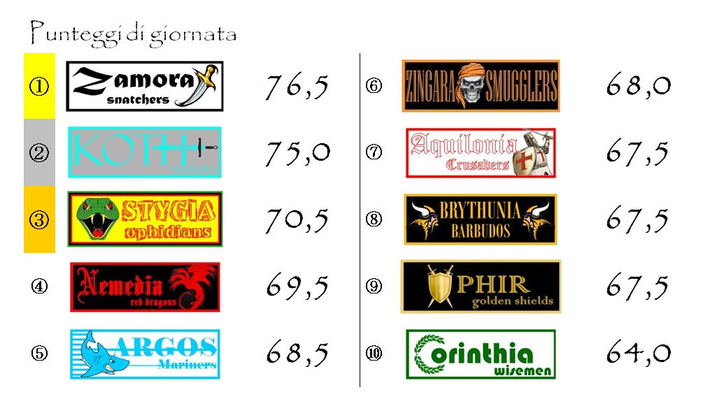 Il quadro degli incontri sarà completato da Brythunia–Zingara, Argos–Koth ed Ophir–Aquilonia.
