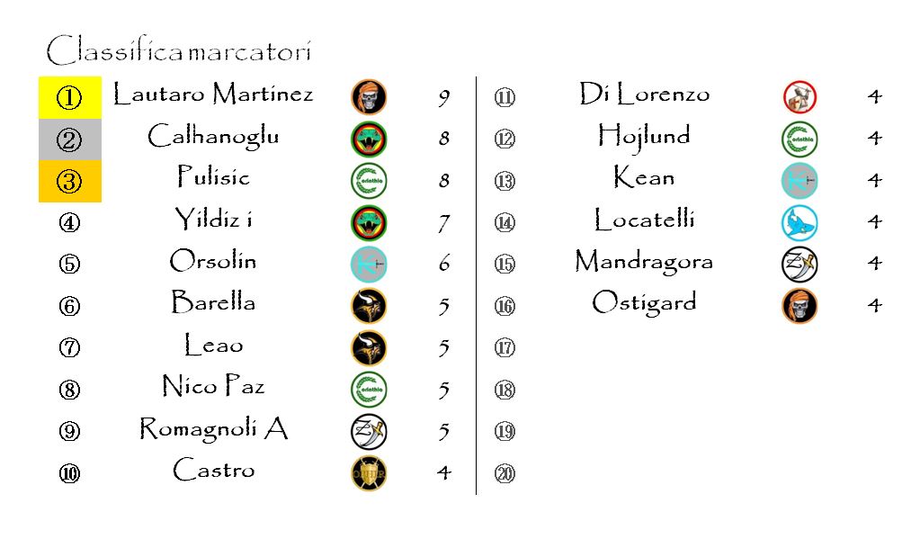Alle sue spalle hanno mosso la classifica (che rimane comunque molto corta) pure Christian Pulisic e Kenan Yildiz.