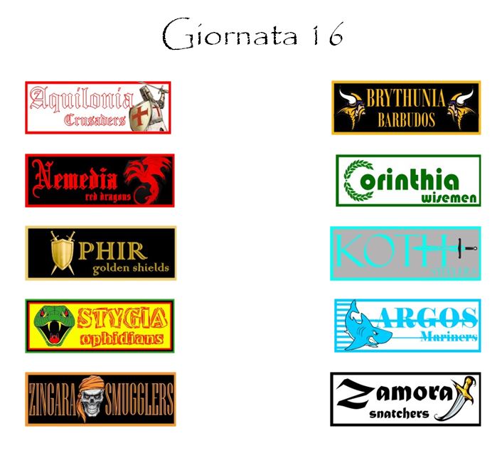 Il quadro degli incontri si completerà con Ophir–Koth e Aquilonia–Brythunia, due sfide molto interessanti a squadre appaiate o molto vicine in classifica.