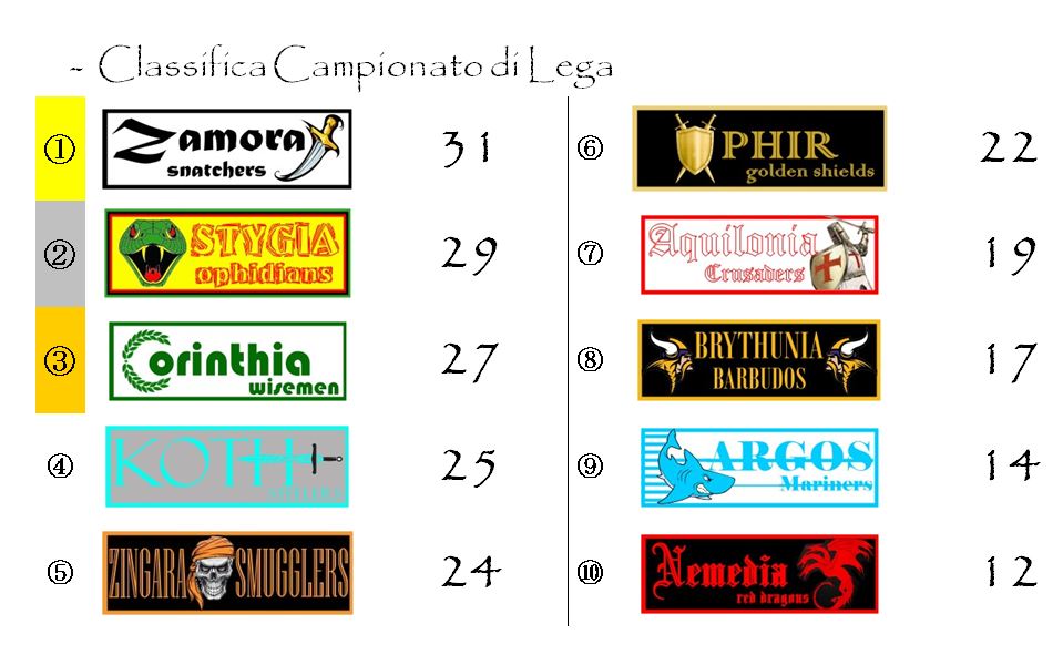Zingara, Stygia e Zamora sono riuscite a rosicchiarle qualche punticino, ma la capolista Corinthia rimane saldamente in testa.