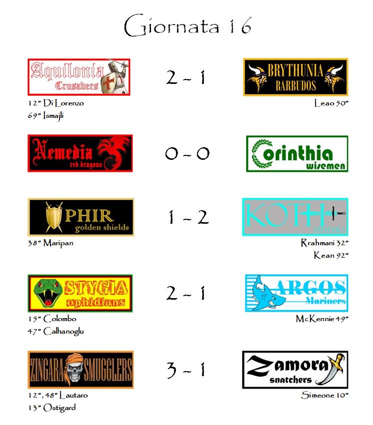 E con i risultati della sedicesima giornata è tutto.