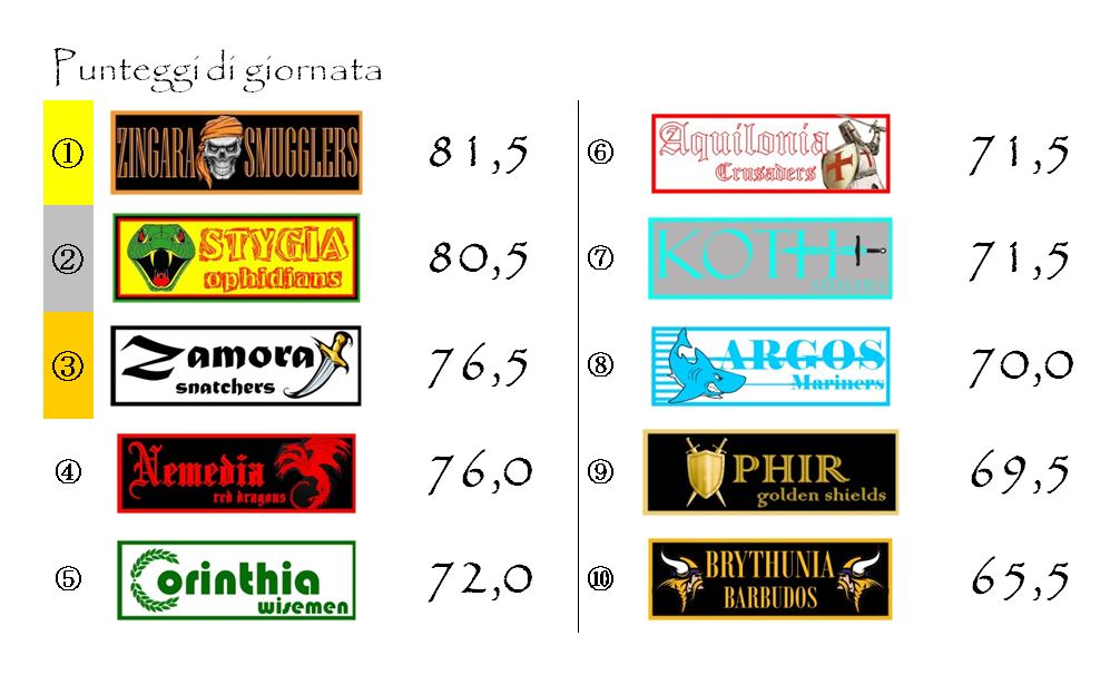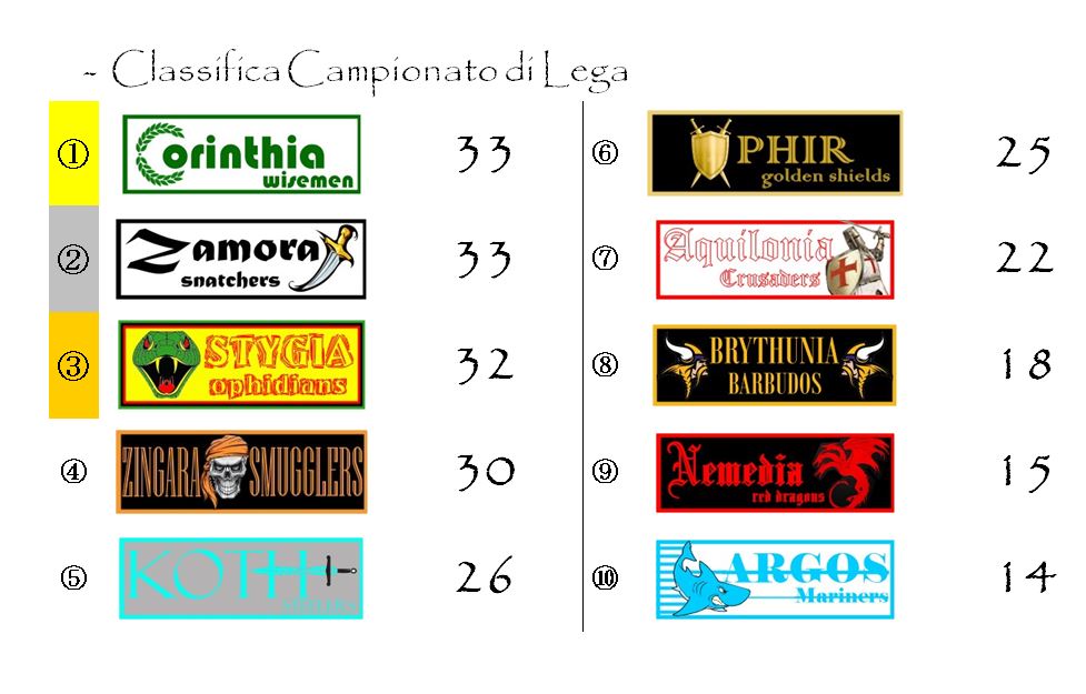 Merito soprattutto degli Zingara Smugglers e degli Stygia Ophidians che hanno recuperato diversi punti alla capolista Corinthia.