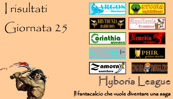Ma non ci sarà da annoiarsi nemmeno con il trentacinquesimo Derby d’Hyboria della storia del nostro fantacalcio che si giocherà al Belverus Dome tra le arci-nemiche Nemedia ed Aquilonia né con un’Ophir–Argos che, anche valendo poco per la classifica, rimane sempre una grande classica della nostra lega.